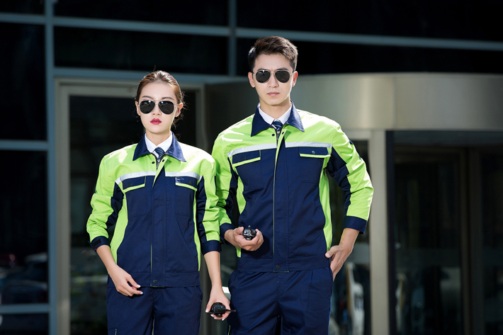 淮南反光條工作服定做款式藏青色拼綠色工作服長(zhǎng)袖套裝GZ-8016