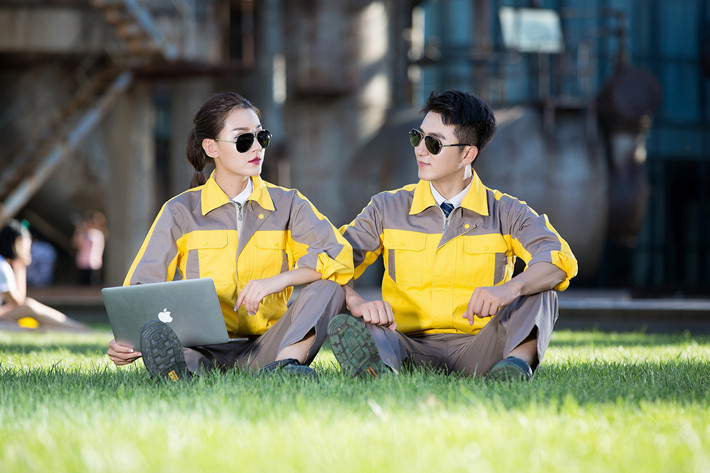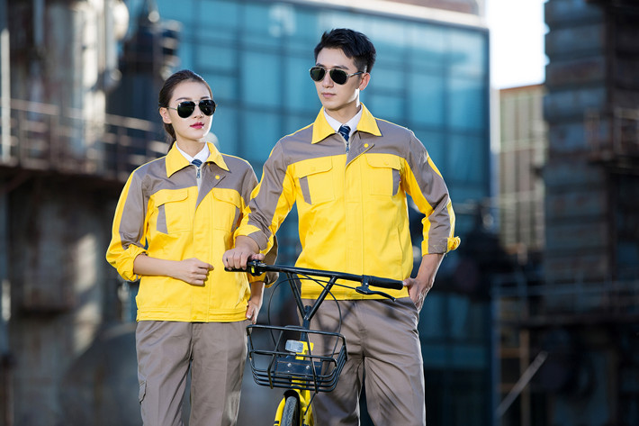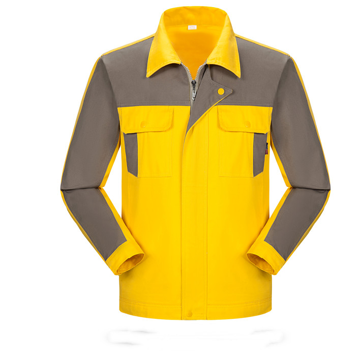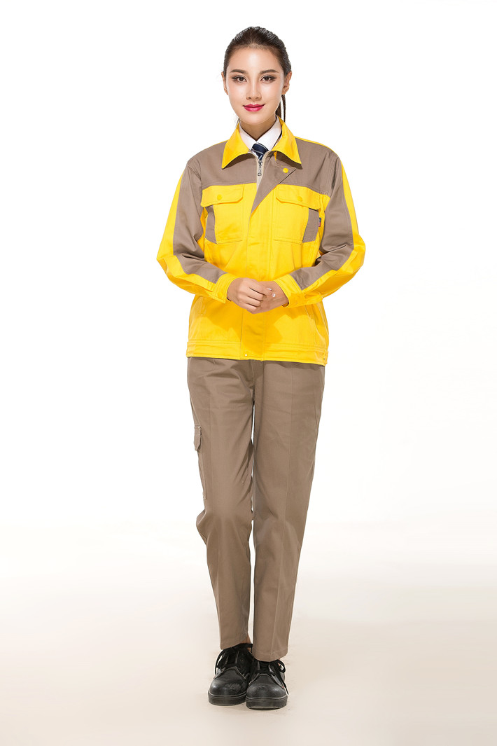 壽縣工作服定做廠家定制工服款式全棉黃色拼灰色套裝GZ-8018