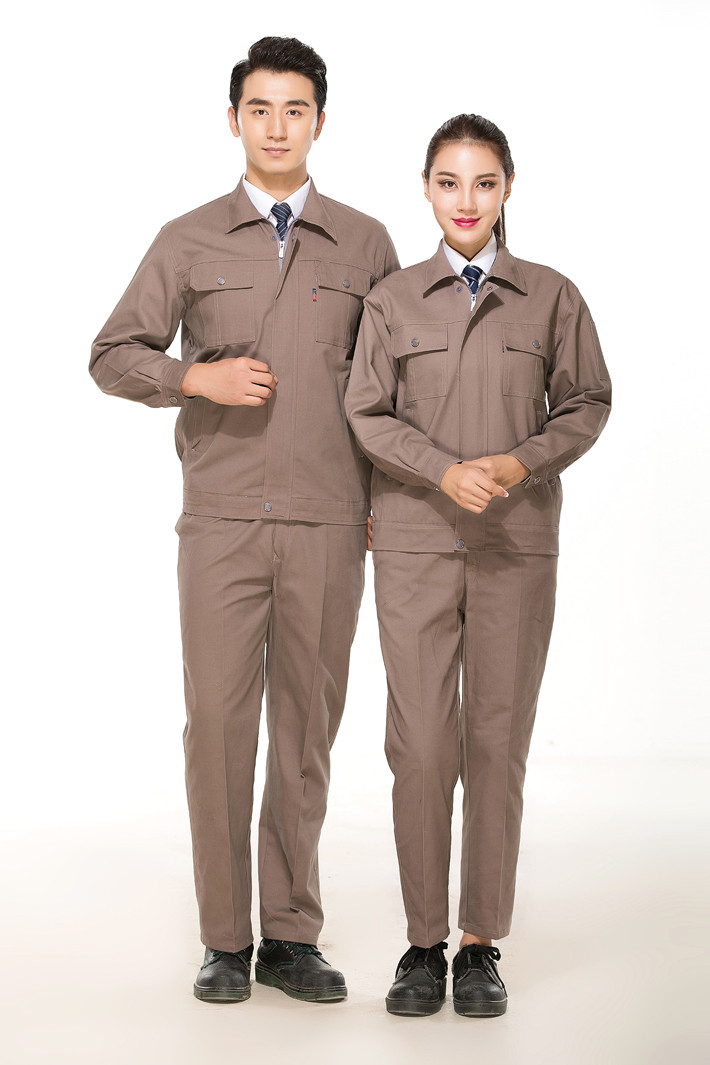 淮南市煤礦工人工作服定做廠家定制工服款式全棉卡其色套裝GZ-8022