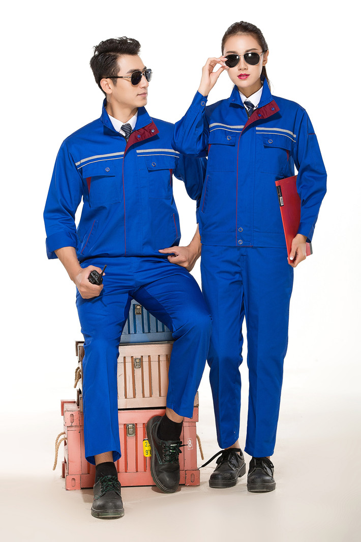 淮南工作服定做廠家定制煤礦機械工廠工服寶藍色立領拼色GZ-8025