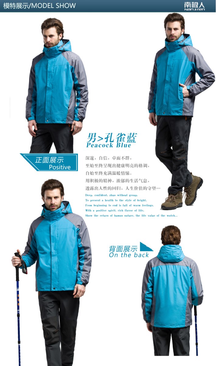 生產(chǎn)工藝:采用WEI-TEX防水透濕科技、三合一可拆卸內(nèi)膽、立體裁剪