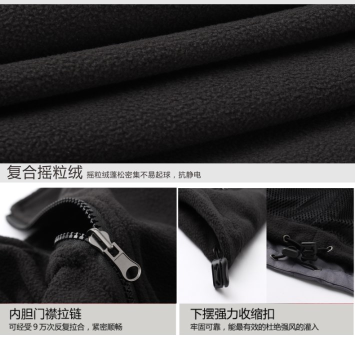 產(chǎn)品成分: 春亞紡PU圖層、搖粒絨內(nèi)膽
