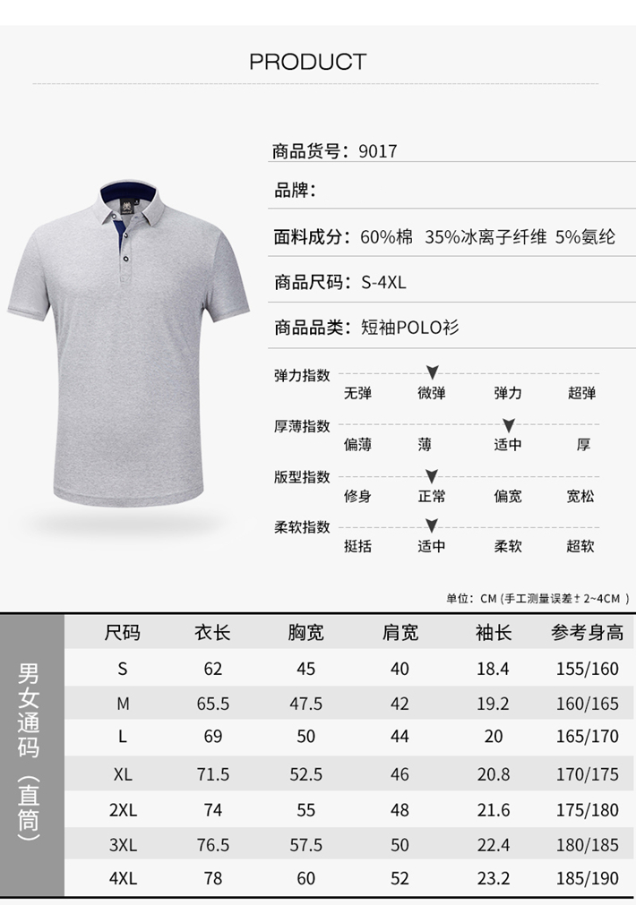 產(chǎn)品成分: 60%棉 35%冰離子纖維 5%氨綸