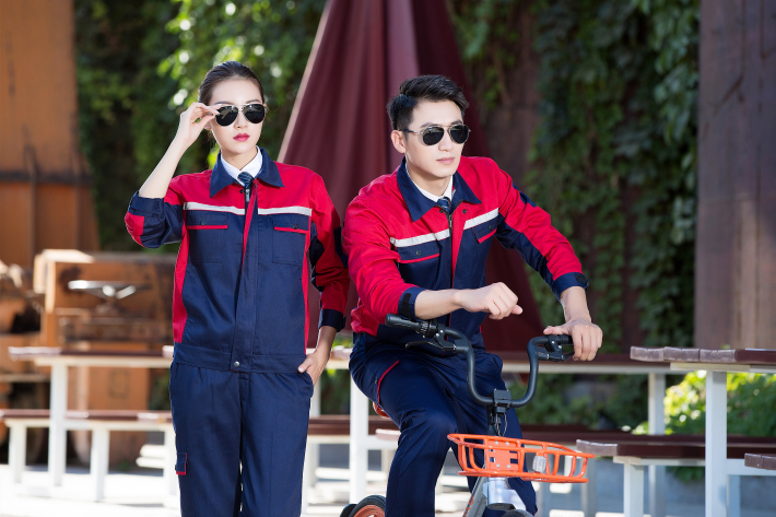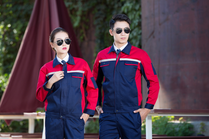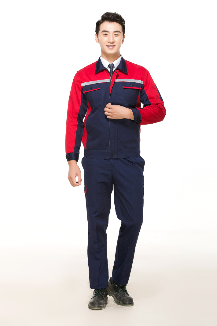 滌棉藏青色色拼紅色反光條工作服套裝FG-8002