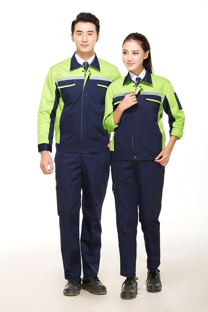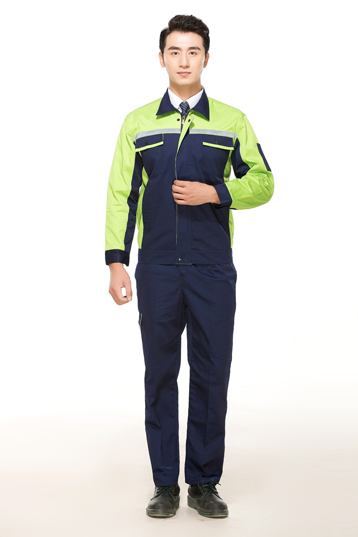 滌棉藏青色拼綠色反光條工作服長袖套裝GZ-8016