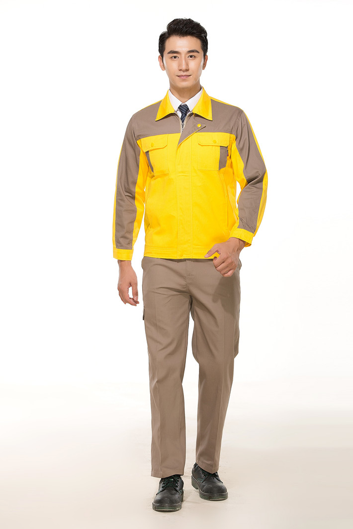全棉紗卡黃色拼灰色拉鏈式工作服長袖套裝GZ-8018