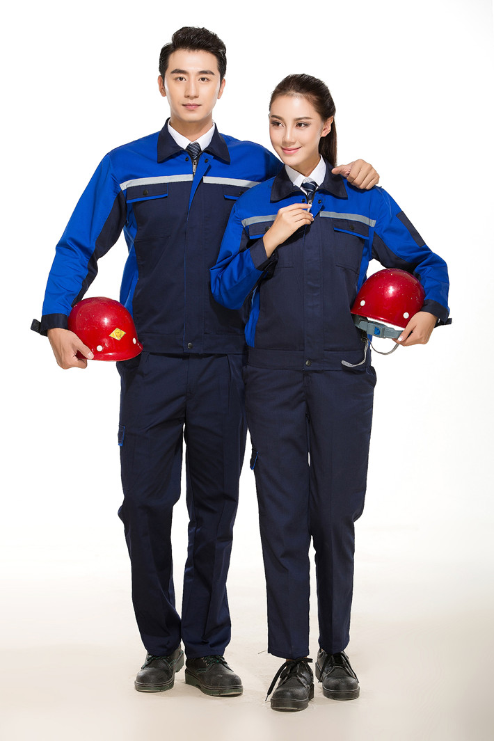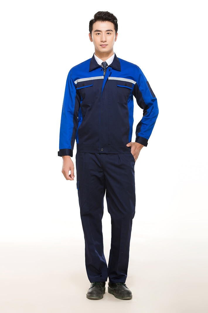 滌棉反光條藏青色拼藍(lán)色馬鞍山工作服GZ8011