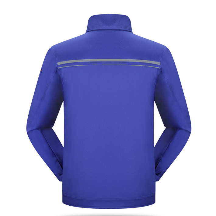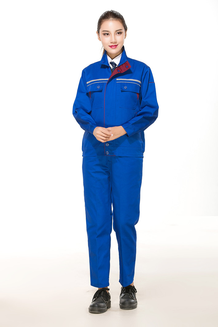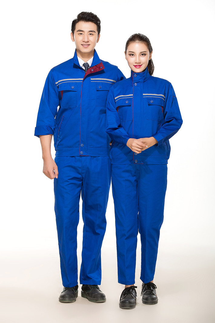 滌棉寶藍色立領拼色拉鏈式反光條工作服長袖套裝GZ-8025