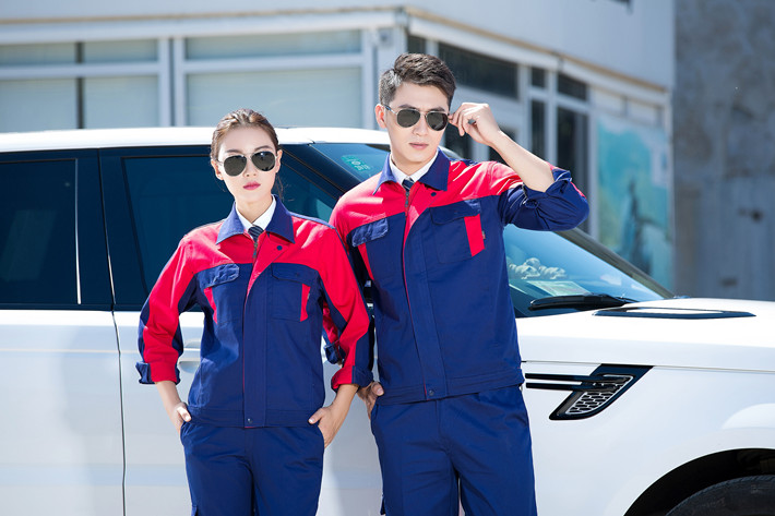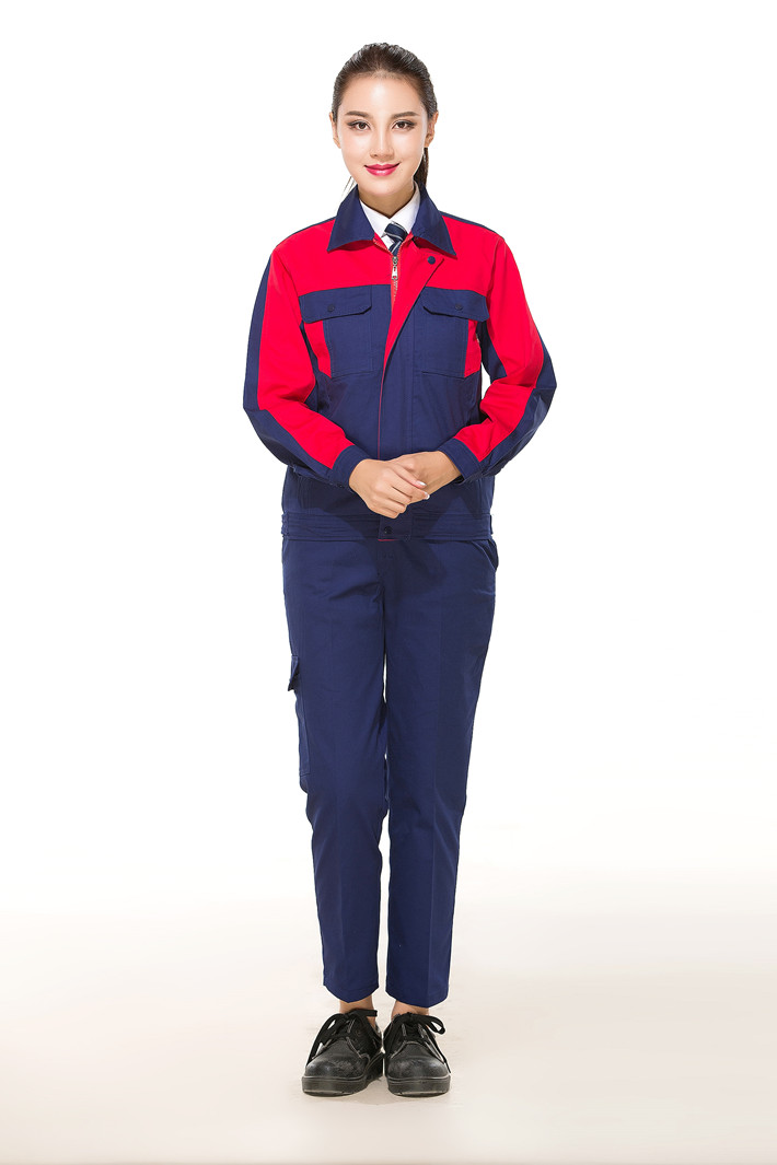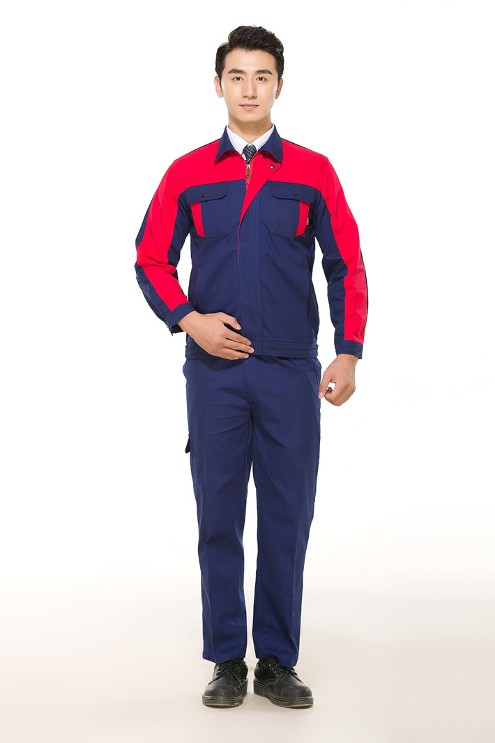 全棉紗卡藏青色拼紅色拉鏈式工作服長袖套裝GZ-QM8019