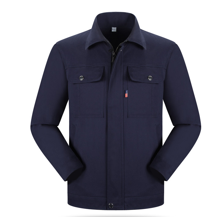 全棉紗卡藏青色拉鏈?zhǔn)焦ぷ鞣L(zhǎng)袖套裝GZ-QM8021