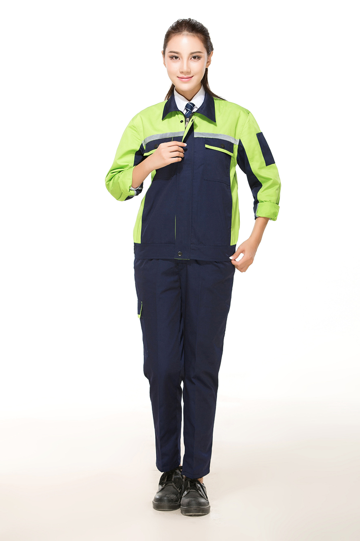 滌棉藏青色拼綠色反光條工作服長袖套裝GZ-DM8016