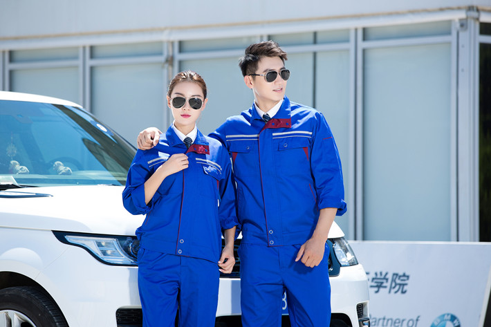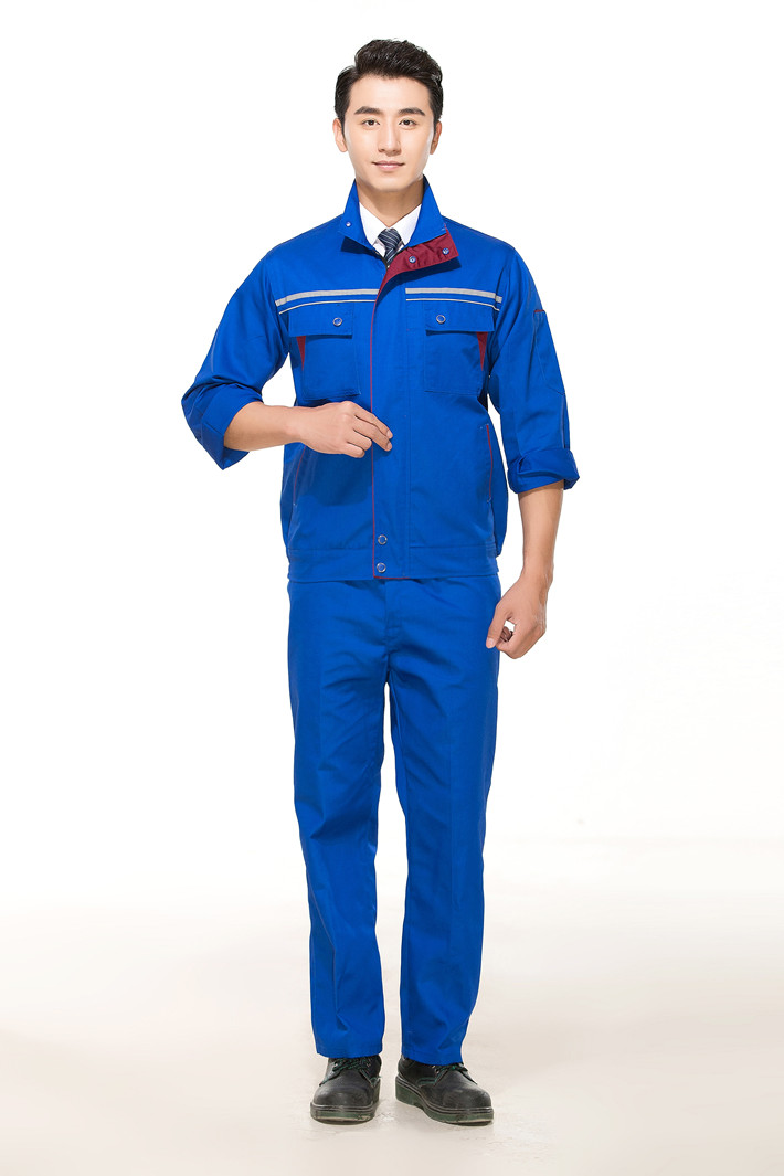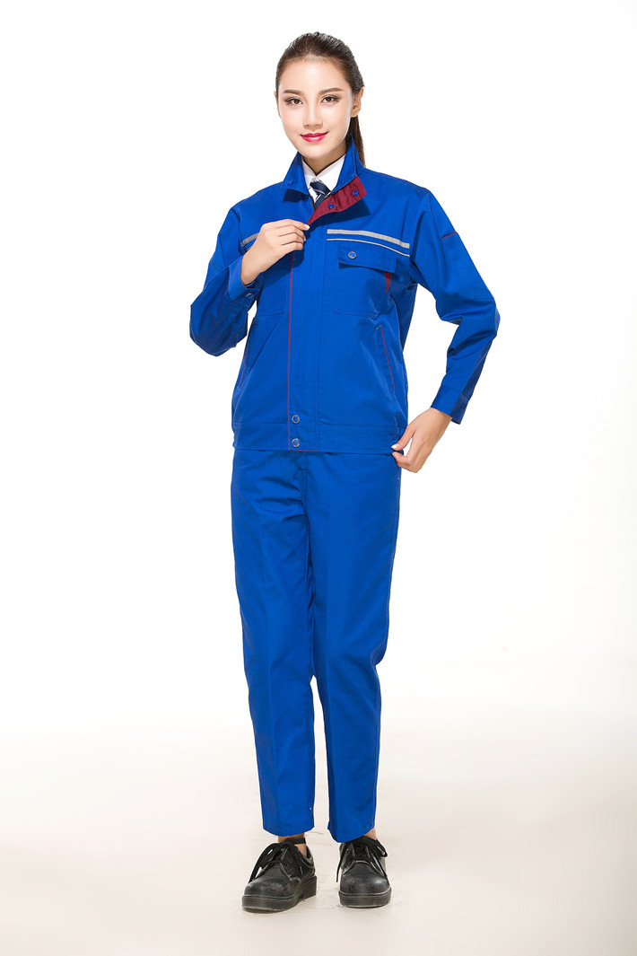 滌棉寶藍(lán)色立領(lǐng)拼色拉鏈?zhǔn)椒垂鈼l工作服長(zhǎng)袖套裝GZ-FGT8025