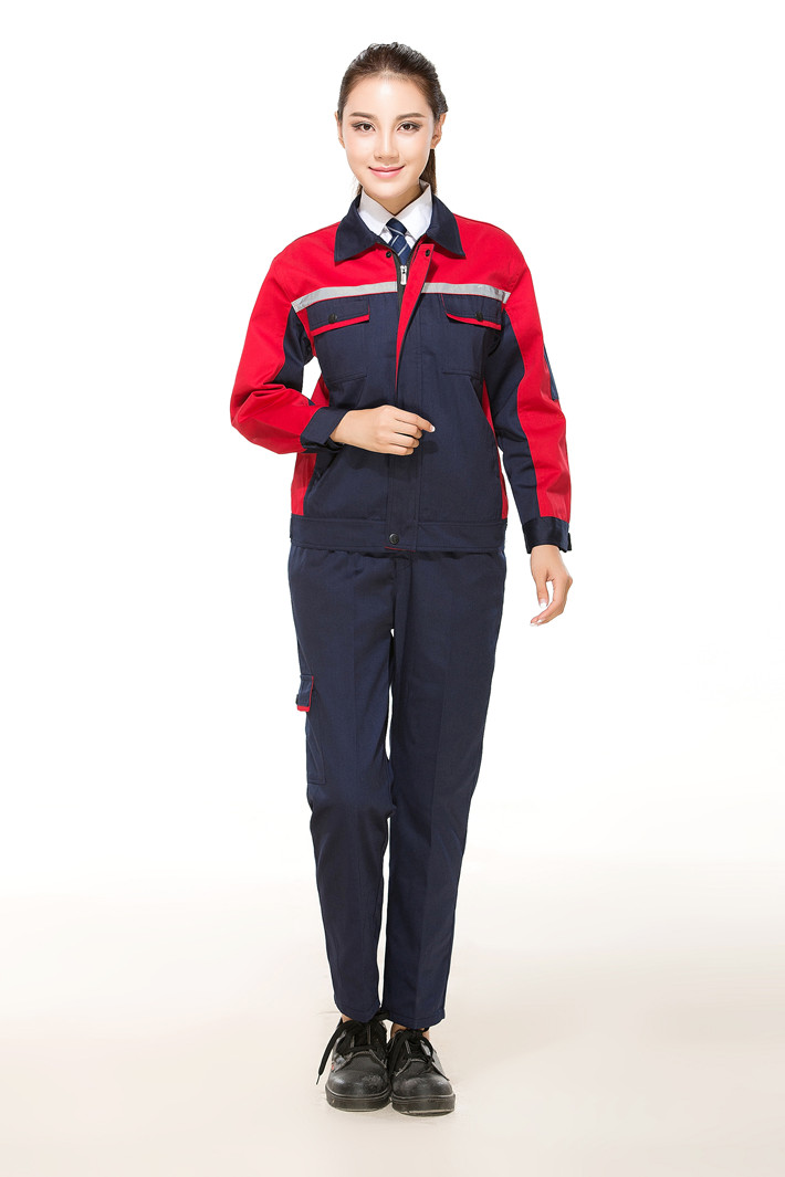 淮南工作服廠家,定做淮南工作服款式藏青色色拼紅色GZ-8012